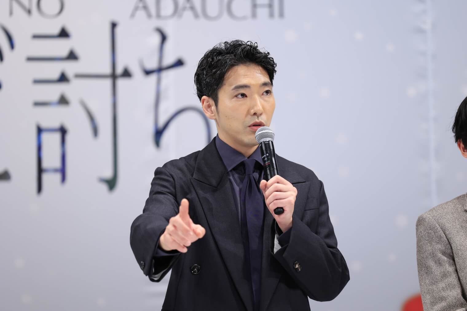 まず仇討ち事件の真相を探る田舎侍・加瀬総一郎役の柄本佑が挨拶に立ち、「今日はたくさんの方にお越しいただきありがたく思います。少しオープニング映像の自己紹介パートが早すぎて誰が誰だかわからなかったかもしれませんが、こういう面々でお届けします」と語り、会場を和ませた。
